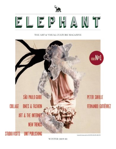 Editorial Review Product Description Elephant—a quarterly magazine from the makers of Frame—focuses its keen eye on art and visual culture. Lately, creative individuals have been protesting against the corporate nature of things, often taking the initiative and setting up new independent ventures. Elephant looks at how it's done. Elephant visits art and design studios, peers over shoulders, steps on graffiti artists' toes, disturbs rehearsals, interrupts takes, rides fixed-gear bikes, and plays the latest computer games. Elephant's tone of voice is direct, sincere, and multidisciplinary. Elephant believes it's time for less cynicism and more encouragement for outbursts of spontaneity—think of those that gave birth to futurism, dadaism, and surrealism. Elephant is the first and only visually oriented art magazine that features over two hundred pages of high-quality, up-to-date, original creative material from all over the world. What readers will find in each issue of Elephant: | |