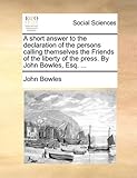 - A short answer to the declaration of the persons calling themselves the Friends of the liberty of the press. By John Bowles, Esq. ... by John Bowles, 2010-05-29