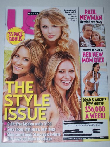 | 46. Us Weekly Magazine October 2008: (The Style Issue) Lauren Conrad, Taylor Swift, Hilary Duff, Paul Newman (Untold Love Story)m Jessica Alba (Her New Mom Diet), Brad Pitt & Angelina Jolie (New House) by Us Weekly Magazine | |