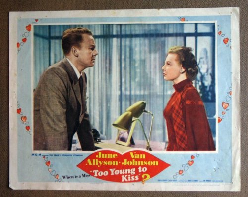 | 70. DB41 Too Young To Kiss JUNE ALLYSON /JOHNSON Lobby Card.Here’s a terrific lobby card from the original release of TOO YOUNG TO KISS featuring a great image of JUNE ALLYSON and VAN JOHNSON.Lobby card is in VERY GOOD- condition. Some pinholes, no stains but a little bit dirty on the border, no tears.A lobby card is an 11 x 14 inch placard advertising a movie. They were displayed in the theatre lobby to entice moviegoers to go to the box office and buy a ticket. by notapp | |