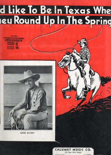 | 37. I'd Like to Be in Texas When They Round Up in the Spring -- Gene Autry on Front Cover -- (piano/voice/uke, Hawaiian Guitar) (V234) by Carl Copeland and Jack Williams (composers) | |