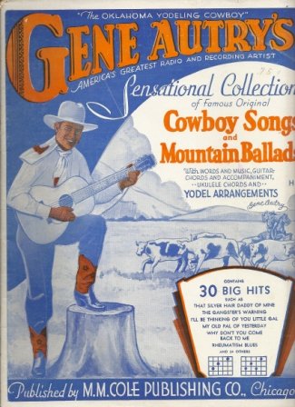 | 50. Gene Autry's Sensational Collection of Famous Original Cowboy Songs and Mountain Ballads with Words and Music, Guitar Chords and Piano Accompaniment, Ukulele Chords and Yodel Arrangements | |