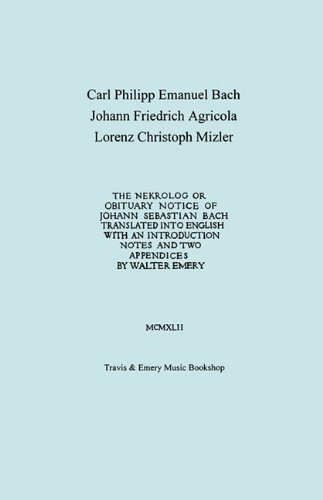 | 46. Nekrolog or Obituary Notice of Johann Sebastian Bach. Translated with an Introduction, Notes and Two Appendices by Walter Emery. (Facsimile of Autograph Translator's Manuscript). by Carl Philipp Emanuel Bach, Johann Friedrich Agricola, Walter Emery | |