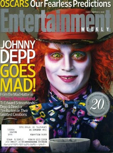| 74. Entertainment Weekly March 5 2010 Johnny Depp/Alice in Wonderlan on Outside Cover (has 4 covers), Oscar/Academy Awards Predictions, Tim Burton & Johnny Depp's Greatest Creations, Animation Reborn, Abraham Lincoln: Vampire Hunter | |