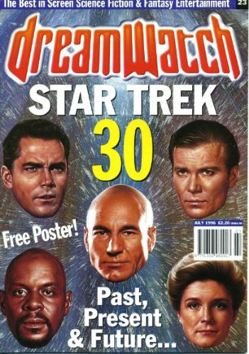 | 47. DreamWatch #23 July 1996 Star Trek Captains on Cover, Star Trek 30th Anniversary, John Pertwee/Doctor Who, The X-Files Season 3, Adam Adamant, Claudia Christian/Babylon 5, Free Poster of Cover (without typography) | |