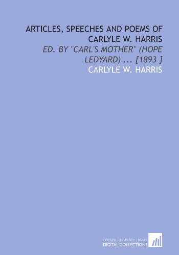 | 4. Articles, Speeches and Poems of Carlyle W. Harris: Ed. By "Carl's Mother" (Hope Ledyard)... [1893 ] by Carlyle W. Harris | |