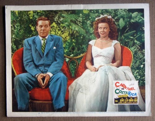 | 29. DM10 Carnival In Costa Rica DICK HAYMES 1946 Lobby Card.Here’s a terrific lobby card from the original release of CARNIVAL IN COSTA RICA featuring a great image of DICK POWELL and VERA-ELLEN.Lobby card is in VERY GOOD-condition. No pinholes, no stains, some tiny edge tears and a 1ö edge tear on bottom border repaired on back with acid free tape. A lobby card is an 11 x 14 inch placard advertising a movie. They were displayed in the theatre lobby to entice moviegoers to go to the box office and buy a ticket. by n/a | |