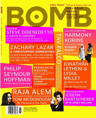 | 7. BOMB Issue 103, Spring 2008 (BOMB Magazine) by Harmony Korine, Jonathan Lethem, Lydia Millet, Steve DiBenedetto, Zachary Lazar, Philip Seymour Hoffman, Raja Alem, Joseph Bartscherer, Tav Falco, Indran Amirthanayagam & Adam Zameenzad | |