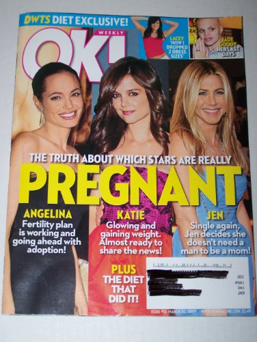 | 20. OK Weekly Magazine The Truth About Which Stars are Really PREGNANT Angelina Jolie, Katie Holmes, Jennifer Aniston, DWTS Diet Exclusive, Lacey Schwimmer, Jade Goody, Jessica Simpson, Britney Spears March 30, 2009 Issue #13 by OK Magazine | |