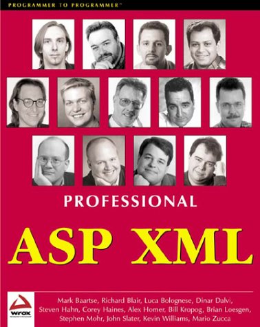 | 17. Professional ASP XML by Steven Hahn, Stephen Mohr, Mark Baartse, Brian Loesgen, Richard Blair, Alex Homer, Corey Haines, Dinar Dalvi, John Slater, Mario Zucca, Luca Bolognese, Kevin Williams, Bill Kropog, Mario Zuccar | |