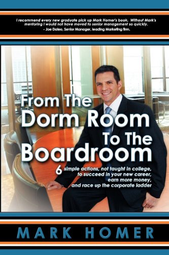 Editorial Review Product Description If you are a recent college graduate entering the business world and you want to race up the corporate ladder, earn more money, and still have time for fun! Then this book is for you. From the Dorm Room to the Boardroom will tell you: 1. What to focus on to be first in line for the big promotion and why just doing a great job in your position will not get you promoted. MARK HOMER is often asked to speak at colleges and corporations on the topic of transitioning from college to the business world. He learned and practiced the ideas in this book during 15 years as a leader and executive in the corporate world. He mentored hundreds of young professionals during that time. He created these 6 steps when he saw first hand the struggle even the best college graduates have in transitioning to the business world. Customer Reviews (4)