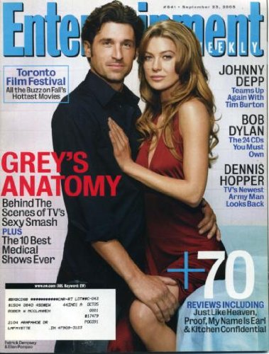 | 58. Entertainment Weekly September 23, 2005 Patrick Dempsey & Ellen Pompeo/Grey's Anatomy Cover, Johnny Depp & Tim Burton/Corpse Bride, Dennis Hopper/E-Ring, Bob Dylan | |