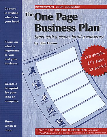 Editorial Review Product Description It doesn't have to take agonizing meetings, pounds of documents, or endless spreadsheets to produce a meaningful business plan. A single page can contain all of the essential elements you need to successfully present your ideas to management, banks, the SBA, venture capitalists, and boards of directors. Customer Reviews (45)