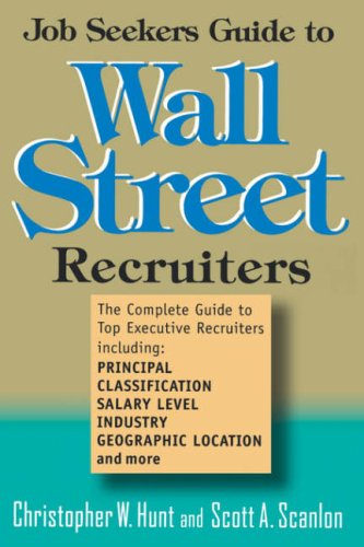 Editorial Review Product Description As the hottest employment sector today, financial services is full of opportunities for anyone looking to enter or move within the field. It's simply a matter of finding them. Executive headhunters and placement specialists can facilitate your search, helping you not only locate the job of your choice, but secure it as well. Job Seekers Guide to Wall Street Recruiters provides in-depth listings for almost 2,300 executive search consultants who cover the financial services arena, from Wall Street to all other major financial centers throughout the country—and the world. Each listing includes full name, address, and phone number, as well as lowest and average salary ranges, industry specialization, function specialization, and recruiter classification. You'll also find expert advice on: Customer Reviews (6)