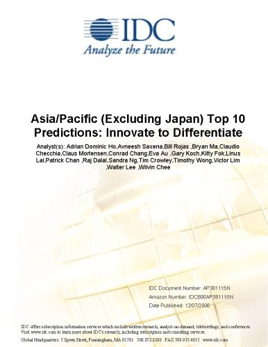 Editorial Review Product Description This IDC study, which is conducted around November every year, encompasses a review of the current year's developments, an analysis of technologies that will make a difference to market and user behavior in the following year. One deliverable from this annual review is a shortlist of 10 predictions, our nominated developments that we believe will have the biggest impact in the next 12 months. "For 2007, IDC predicts the IT market in Asia/Pacific (excluding Japan) or APEJ to reach US$132 billion, a 10% growth rate over 2006. Together, India and China will make up more than 43% region's IT spending, with China remaining the largest IT market, comprising 32% of the region's IT spending and India growing at a remarkable 23%. While the major economies are expected to continue to deliver strong results, both India and China will begin to take a more serious look internally, with focus on bridging urban/rural divides and infrastructure spending. These changes will require more specific knowledge of domestic markets for companies to successfully compete within these major markets," notes Eva Au, managing director, IDC Asia/Pacific. | |