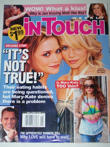 | 7. In Touch Magazine May 3, 2004 It's Not True: Mary-Kate & Ashley Olsen Twins, The Apprentice Winner Bill Rancic, Jennifer Aniston, Matt LeBlanc, Cher, Kelly Ripa, Alicia Keys, Hilary Duff by In Touch Magazine | |