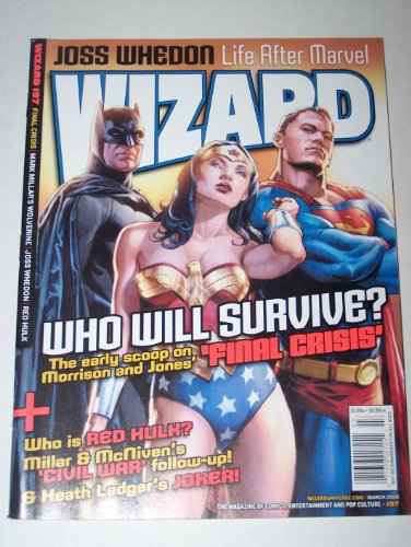 | 38. Wizard Magazine March 2008 Issue 197 Who Will Survive? Final Crisis Batman, Wonder Woman, Superman, The Early Scoop on Morrision and Jones', Who is Red Hulk?, Mark Millar & McNiven's Civil War Follow-up, Heath Ledger's Joker, Joss Whedon, Wolverine by Wizard Magazine | |