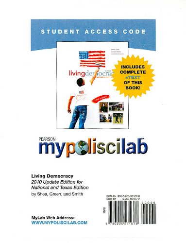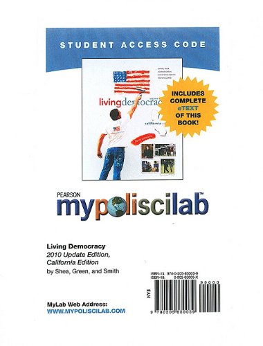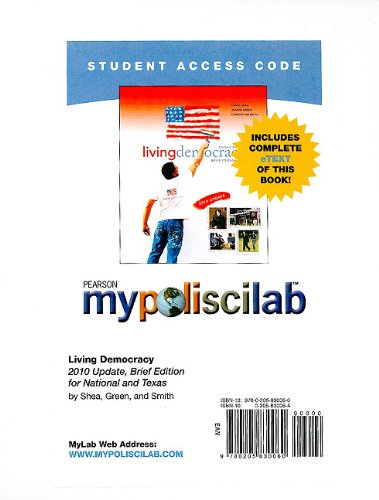 Editorial Review Product Description Books à la Carte are unbound, three-hole-punch versions of the textbook. This lower cost option is easy to transport and comes with same access code or media that would be packaged with the bound book. This Package Contains: MyPoliSciLab with E-Book Student Access Code Card and Living Democracy, 2010 Update, Brief National Version, Books a la Carte Edition Updated to reflect the current political landscape, this book is organized around a "participation" approach and provides an innovative content style and interactive assessment. It is designed to get readers to participate in their learning and in all aspects of American politics. | |