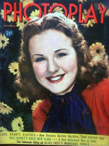 | 33. PHOTOPLAY magazine (oversized) November 1938 with Deanna Durbin on the cover.SCARCE. Inside candid photos/stories on Deanna Durbin, Jimmy Stewart, Alice Faye, Bette Davis dancing, Hedy Lamarr, Norma Shearer, Ginger Rogers, Joan Crawford, fashion: Loretta Young, Andrea Leads, Jean Parker, Ann SHeridan, color Joan Bennett. by Fred Sammus | |