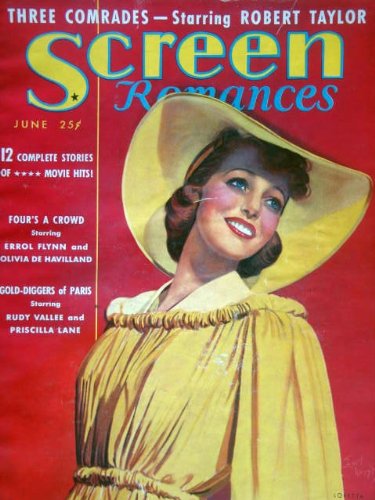 | 25. SCREEN ROMANCES magazine June 1938, with LORETTA YOUNG on the cover. Scarce issue. Inside we have nice article on full page ad VIVACIOUS LADY with Ginger Rogers, 2-page ad for ROBIN HOOD with Errol Flynn, portraits of Maureen O'Sullivan, Claudette Colbert, Norma SHearer. by Fred Sammus | |