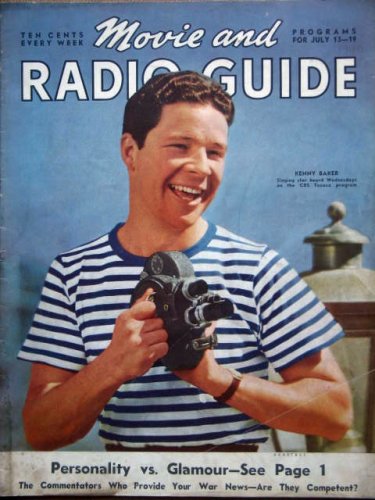| 30. MOVIE AND RADIO GUIDE with Kenny Baker on cover July 1940. Inside candid photos of Ann Sothern, Bette Davis with mother at oscars, Doug Fairbanks Jrwith daughter, Norma Shearer at Ciros after ALL THIS HEAVEN TOO premiere. by Fred Sammus | |