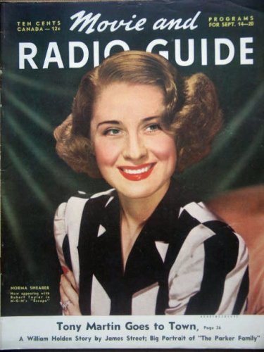 | 34. MOVIE AND RADIO GUIDE, September 1940 with Norma Shearer on cover. inside we have candids of Betty Grable and Don Ameche, William holden, Bing crosby and Mary martin, Judy garland with mickey rooney holding a piece of their sheet music. by Fred Sammus | |