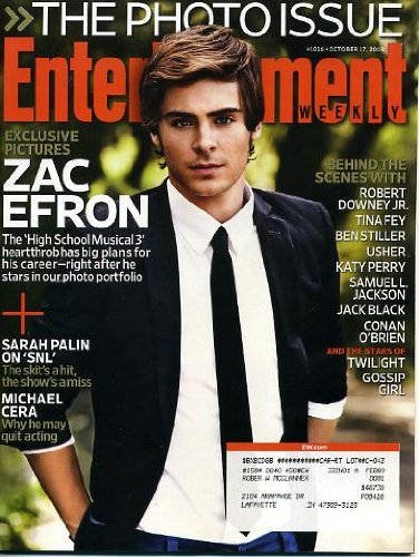 | 42. Entertainment Weekly (October 17, 2008)Zac Efron (The Photo Issue; Robert Downey Jr.; Tina Fey; Ben Stiller; Usher) by Entertainment Weekly | |