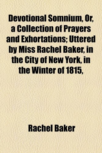 | 11. Devotional Somnium, or, A Collection of Prayers and Exhortations uttered by Miss Rachel Baker in the City of New-York in the winter of 1815 during her abstracted and unconscious state to which pious and unprecedented exercises is prefixed an account of her life ... by Rachel. John H Douglass, introduction BAKER | |