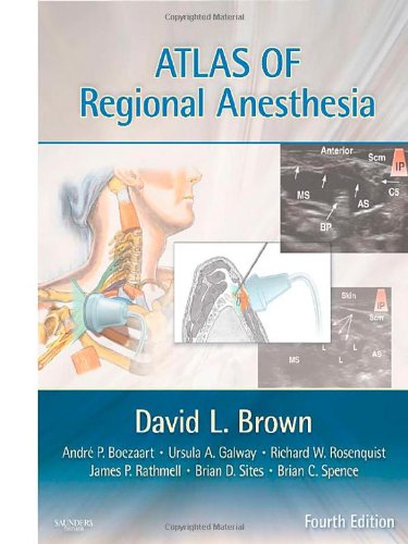 Editorial Review Product Description Atlas of Regional Anesthesia, by Dr. David L. Brown, has been the go-to reference for many years, helping clinicians master a myriad of nerve block techniques in all areas of the body. This meticulously updated new edition brings you state-of-the-art coverage and streaming online videos of ultrasound-guided techniques, as well as new coverage of the latest procedures. Hundreds of high-quality full-color illustrations of anatomy and conventional and ultrasound-guided techniques provide superb visual guidance. You'll also have easy access to the complete contents online, fully searchable, at expertconsult.com. A must-have atlas covering all techniques in regional anesthesia with high-quality images, a new online companion and added illustrative and video coverage of ultrasound-guided techniques Customer Reviews (5)