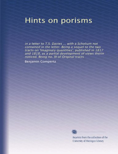 | 9. Hints on porisms: in a letter to T.S. Davies ... with a Scholium not contained in the letter. Being a sequel to the two tracts on 'Imaginary quantities', ... noticed. Being no. III of Original tracts by Benjamin Gompertz | |