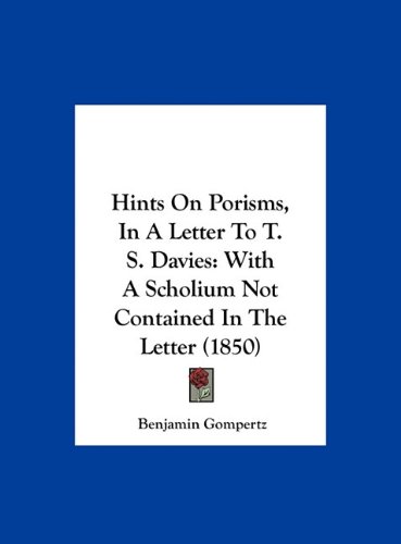 | 8. Hints On Porisms, in a Letter to T.S. Davies with a Scholium Not Contained in the Letter: Being a Sequel to the Two Tracts On 'imaginary Quantities', Published ... Therein Noticed Being No. Iii-Of Original Tr by Benjamin Gompertz | |